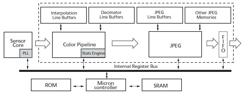 MT9D131C12STC features: (1)DigitalClarity CMOS imaging technology; (2)Superior low-light performance; (3)Ultra-low-power, cost-effective; (4)Internal master clock generated by on-chip phaselocked loop oscillator ; (5)Electronic rolling shutter (ERS), progressive scan; (6)Integrated image flow processor (IFP) for single-die camera module; (7)Automatic image correction and enhancement, including lens shading correction; (8)Arbitrary image decimation with anti-aliasing; (9)Integrated real-time JPEG encoder; (10)Integrated microcontroller for flexibility; (11)Two-wire serial interface providing access to registers and microcontroller memory; (12)Selectable output data format: ITU-R BT.601 (YCbCr);565RGB; 555RGB; 444RGB; JPEG 4:2:2; JPEG 4:2:0; Raw 10-bit; (13)Output FIFO for data rate equalization; (14)Programmable I/O slew rate.